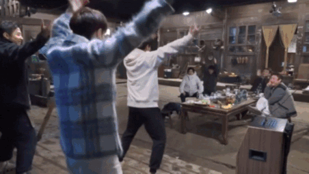 晚饭后彭彭、张艺兴、刘晓邑三人还组了个临时的舞蹈组合,一起cover黄渤老师的经典舞台《跳起来》。