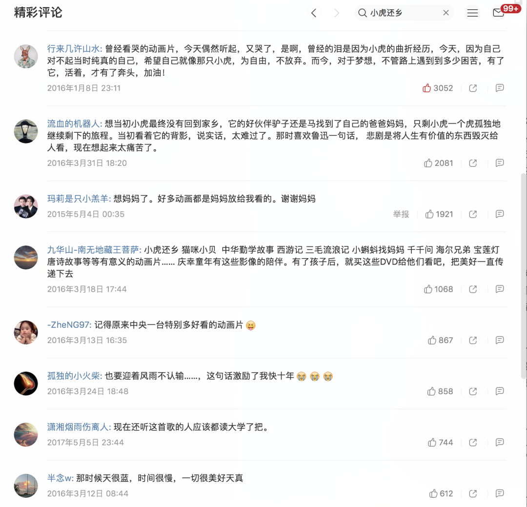 《小虎还乡》有多好哭?无论是在B站的完整剧集,还是在网易云的片尾曲《全力以赴》底下,一群回忆童年的成年人不约而同哭出声音。
