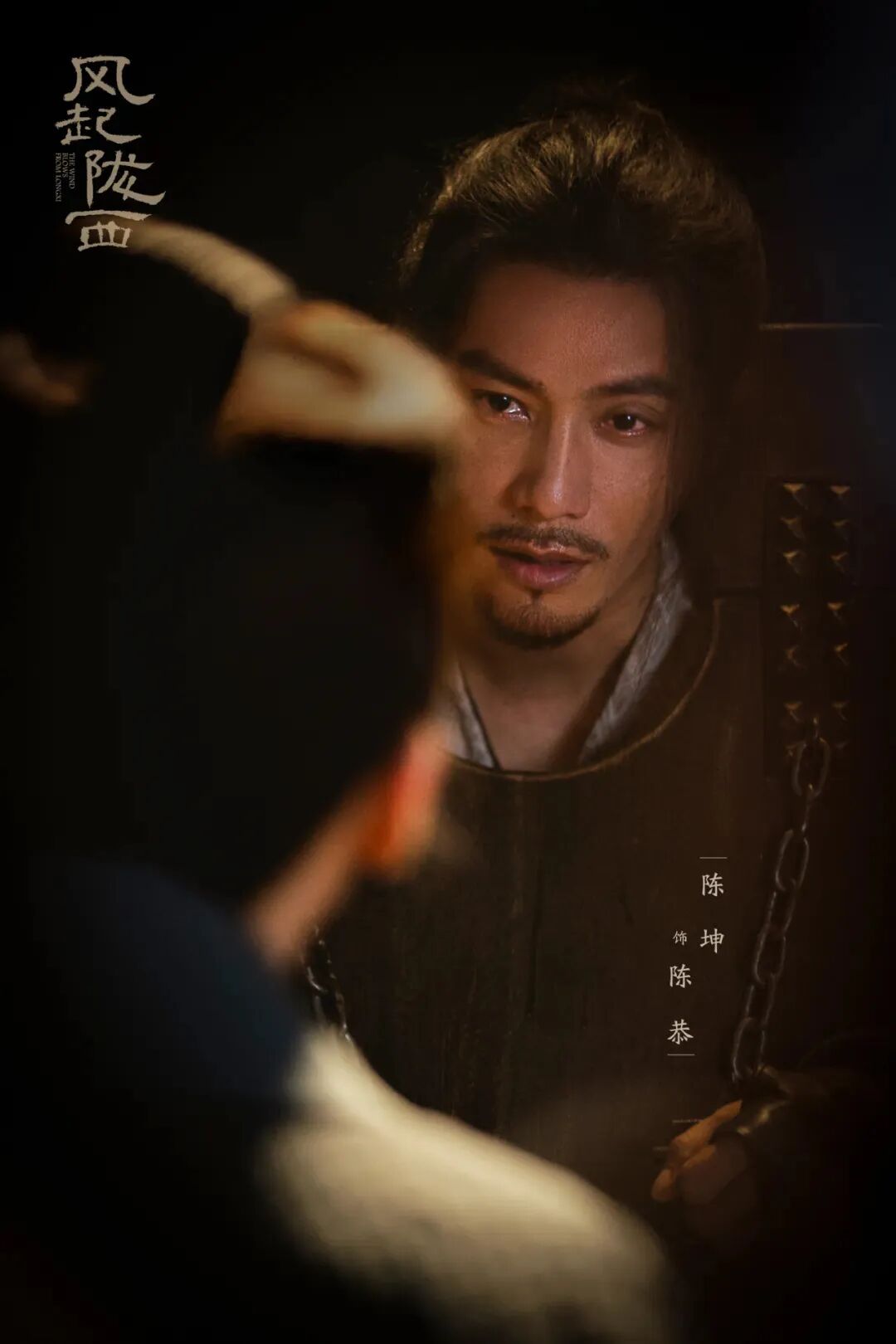 《风起陇西》里陈坤饰演的陈恭黑瘦、内敛,留着几绺深邃的胡须。由于陈坤的五官过于精致,导演路阳希望他在造型上可以更为落地。在第一集的末尾,路阳用一个很长的前移镜头,来展现他当时进退维谷的困顿局面。