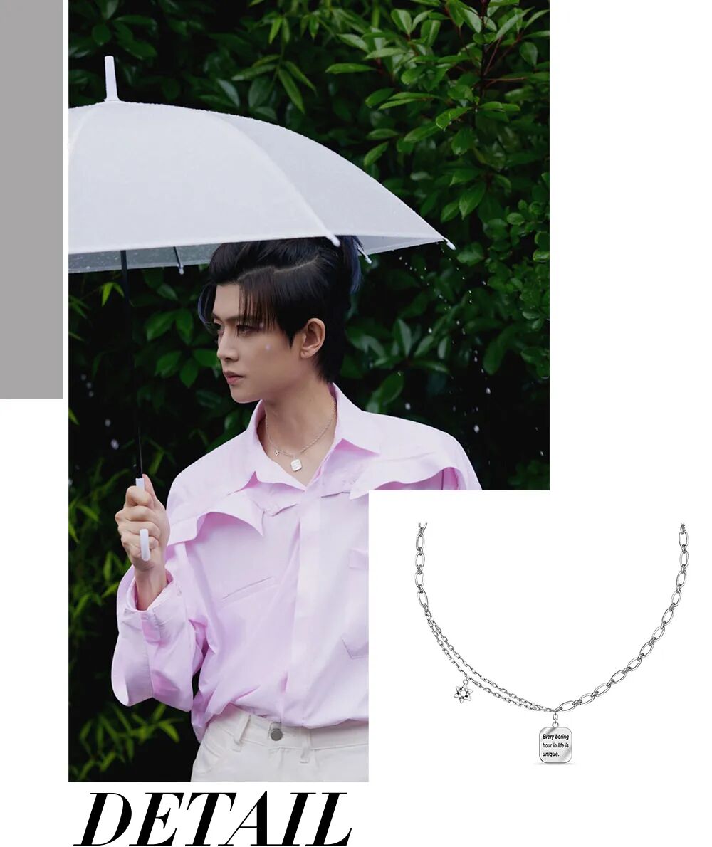 作为演员,任嘉伦曾在采访里说:“相比于复盘角色本身的演绎,我复盘更多的是在每次镜头前获得的,关于表演方式的经验。每个角色都是独一无二的,下一次再演同一个角色,我也避免用同样的表演形式呈现,希望下一条更成熟。”而如今的他,也的确正一步一个脚印完成着他对自己的期待。在综艺中,他为我们带来欢乐,在这个月,他也推出了全新的个人专辑《33》。主打歌《无愧》就像他的2022年一样不惧未知与尝试,以新的风格突破自我。在不同身份之间切换,不仅让我们看到了嘉伦更多的可能性,也让我们得以解锁他时尚的另一面。如果说古装的任嘉伦自带穿越时空的撩人特质,那么他的现代装扮则更多了一丝百变的味道~从日常休闲风的私服到出席各种活动盛典的礼服,再到诸多时尚代言和大片拍摄,这一年来,任嘉伦的时尚表现也越发可圈可点。说到底,穿搭的完成还是少不了精心的首饰搭配,精致珠宝的巧妙点缀更是能够给造型加分不少!作为周大生品牌代言人的任嘉伦,自然早就拿捏了一套属于自己的首饰搭配公式~不论是颇具中式调性的黄金首饰、提升高级质感的钻石珠宝抑或潮酷百搭的个性银饰,在任嘉伦这儿都能展现出独属于它们的风格与韵味。通过古装角色大放异彩的任嘉伦,浓眉大眼的五官、方正立挺的轮廓,本就自带古典调性,与近几年流行起来的新中式风格,正好完美适配。在此前的一次品牌拍摄中,任嘉伦佩戴了一款具有古典中式风格的单品,在国风与摩登的碰撞中延展新中式风格。一套水墨元素的白色西服套装,搭配古风感满满的周大生非凡古法金系列项链,来自周大生专利的三生金编手工技法编制而成的金辫细腻精致,使东方之美在丝丝金线的柔情百转中熠熠生辉,将风格诠释得淋漓尽致。