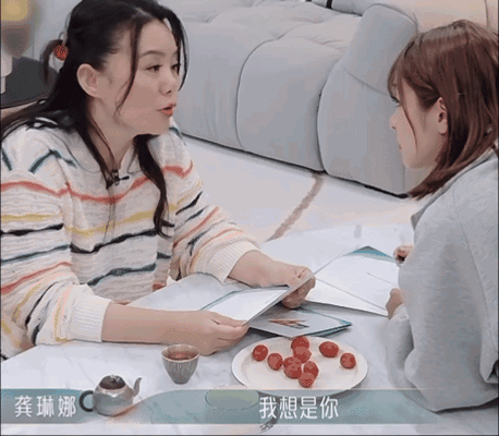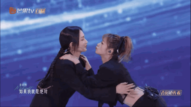 台下的两人也把“惺惺相惜”刻在了脸上,两位曾经无人押宝的姐姐彼此治愈,又泪又燃。虽然两人语言不通,但能及时给予情感的回应和恰到好处的鼓励。舞台上元气满满的最强甜妹小美,下了台却很容易陷入内耗,龚琳娜为了鼓励她找到自信,主动分享深埋心底的容貌自卑。从小被告知“不是个漂亮女孩”的老龚,先一步拒绝她认为属于漂亮女孩的粉色,并告诉自己“我该喜欢红色,我很强大”。但她即便事业已经有所成就,却依旧逃不出外貌审判带来的自卑。语言不通的小美,准确get到对方的点,并给予抚慰。在表演后的一次双人直播中,小美特意送上粉色蛋糕,代表龚琳娜与自己的和解。这种女性之间彼此怜爱、相互帮扶的美好情谊,看多少遍也不会够。即便在刚开始,美依礼芽在二次元的热潮中高歌猛进冲上断层第一,但看她目前为止的表现,依旧是值得这些赞誉的。不是掌握流量密码后一味地复制,而是用更具新意和心意的作品回馈观众,这大概是小美能够吸引人持续关注她,并被她吸引的原因。