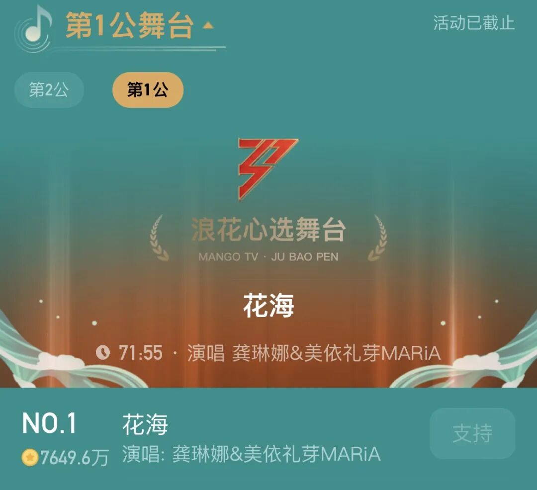 在美依礼芽的话题度打开后,镜头相应地也变得更多。观众发现,自带CP感的最强甜妹跟谁站在一起都能狠狠嗑起来。不过最让人上头的,还得是“琳芽之旅”,还有一个小名“龚美呐赛”,是正主亲自下场认领的程度。起源于美依礼芽和龚琳娜一公合作的《花海》,虽然在现场投票中仅拿到第五名,但网络投票中以7000万+的票数断层第一。一片粉色的《花海》在两人全开麦的动情演唱中绽放,小美充满反差的嗓音和老龚极具特色的歌声带来的震撼超越语言能描述的范围。