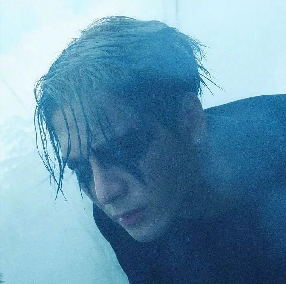 他眼圈周围的黑雾都被冲刷得淋漓,头发全湿了。他还在不懈地前行,不屑的不低头。