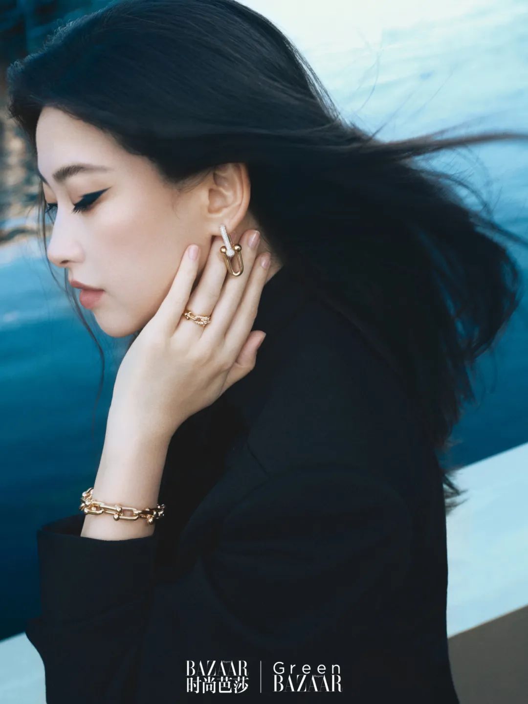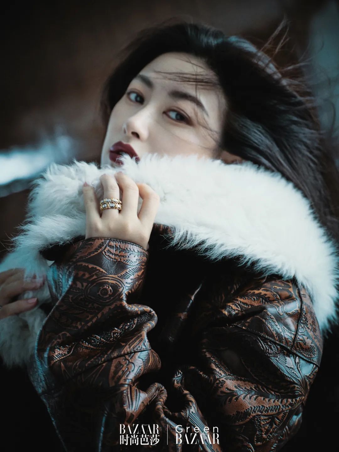 我不觉得现在的自己已经完全蜕变成了一个圆满的状态,因为这种变化往往是同时发生、彼此交织的。比如此刻的我松弛、美丽地戴着珠宝,穿着华服,但几个月前我还在剧组每天拍十几场戏,连轴转,状态也会比较紧绷。高压的时候我也一样会感觉整个人都沉下去了,随着不断地输出自己,灵感也会跟着消失。但我这些年学会了做些别的事为心脑“补给”。比如我拍完戏立刻投入了当代艺术,和北京当代艺博会开启了一个艺术展览项目“欢乐之家”,我从策展、挑作品、与设计师沟通到最后搭建,甚至到晚宴,全部亲自参与。虽然这个过程依旧忙碌,但我的精神得到了滋养。
