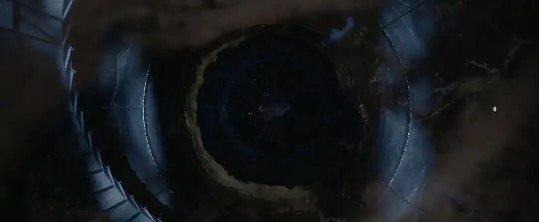 以美术为例,刘强老师和屠楠老师呈现电影怪物藏身的洞穴时,我们就有过深入的讨论。选择洞穴的材质并不困难,但关键在于“洞穴的概念是什么”。最终,我们决定将这个空间设计成“摄影机内部”的隐喻:从类似压片管的入口,到宛如机身结构的纵向通道,再到三根弯曲的柱子支撑、如同脚架底部的最终洞穴。通过与美术指导及舞台美术团队反复推敲,我们构思了许多这种概念化结构。