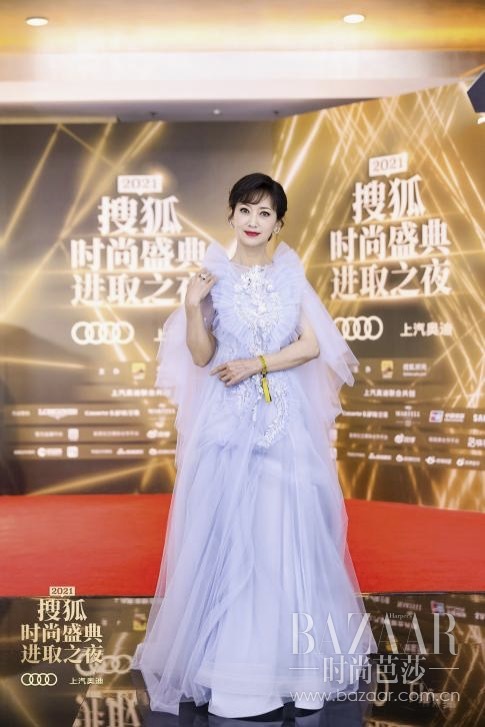 2021年适逢搜狐时尚盛典十周年,活动以“进取之夜”为主题,演员赵雅芝一身淡紫色礼裙亮相,散发着时光沉淀下的优雅与端庄。她是华语影视圈公认的“冻龄女神”,凭借优雅气质与精湛演技,在近50年演艺生涯中塑造了《新白娘子传奇》白素贞、《上海滩》冯程程、《戏说乾隆》程淮秀等众多跨越时代的经典形象,在观众心中留下了难以磨灭的印记。