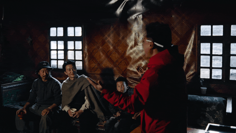 那一刻,早已把“表演”这两个字抛在脑后的黄轩,在藏家里几个“人来疯”的孩子强烈带动下,和尹超、同行的灯光师,以及管家洛桑,一起被拉进了这场毫无预告的“家庭大联欢”,唱歌、跳舞,节奏乱却情绪高涨。