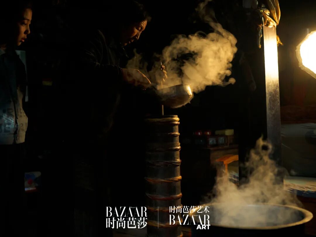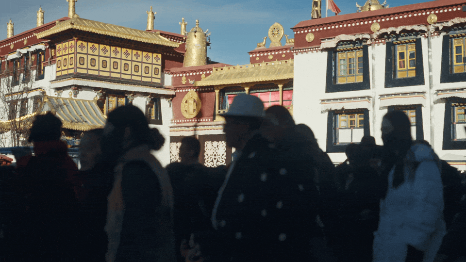 从展厅出来后,黄轩觉得有些冷,要了热水喝。“因为我在被那一张张的面孔震撼着。”他对尹超说。这份震撼,或许既来自艺术本身的力量,也源于这几天所经历、所感受到的交织冲击。这样的情绪伴随黄轩走过八廓街、走过大昭寺。年节时分的拉萨街头分外热闹,恰逢今年藏历新年与农历新年的交汇,老老少少上街买年货,人潮拥挤,热气蒸腾。