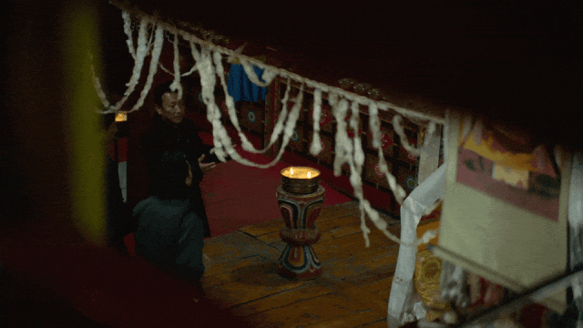 黄轩随着洛桑的声音慢慢走进寺中。没过多久,寺内响起了僧人击鼓的声音,节奏清晰而有力,在空间中回荡。那是一种秩序感极强的声音,低沉却稳定,黄轩在窗边驻足了很久,没有说话。此时,尹超举起相机,悄然按下快门,将这一刻留了下来。